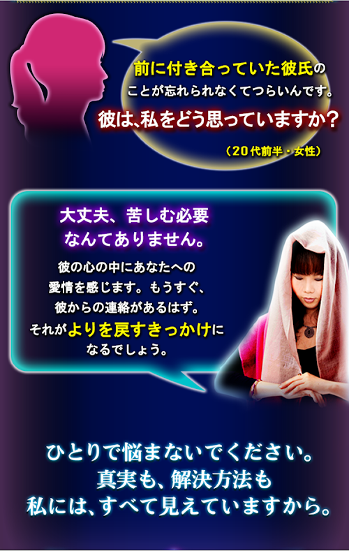 また、魂のつながりを見ることで、気になる異性との相性や恋の未来を霊視。