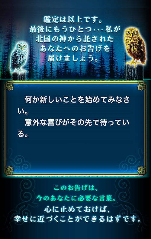 さらに鑑定の最後には、北国の神からのお告げを受け取ることもできます。