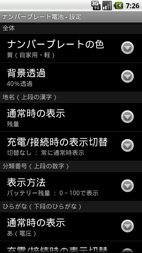 設置したウィジェットをタップすると、設定画面が開きます。Battery level widget of license plate type realistic is (1 × 2 size).