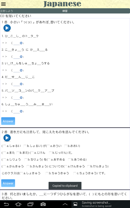 このアプリケーションは新しい「日本語能力試験」N2合格を目指す人・中級レベル終わって上級レベルの勉強を始めた人・日常生活、仕事でよく使われる聴き能力を学びたい人のためのものです。