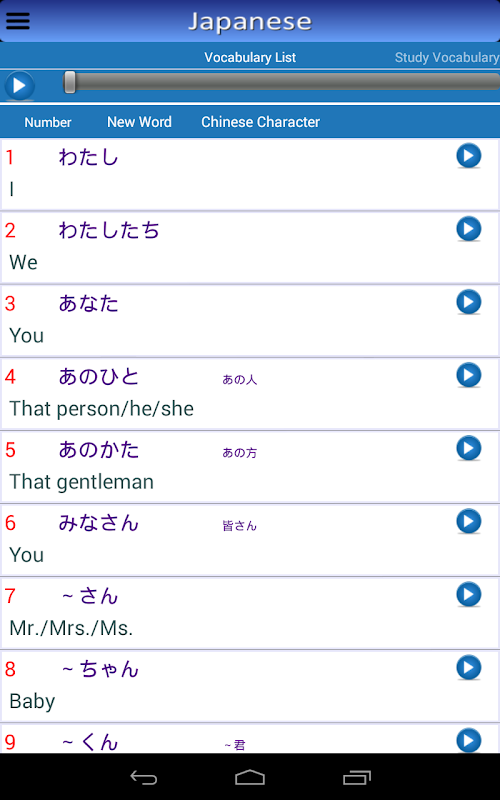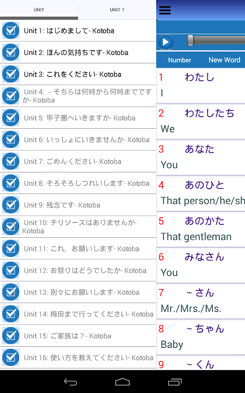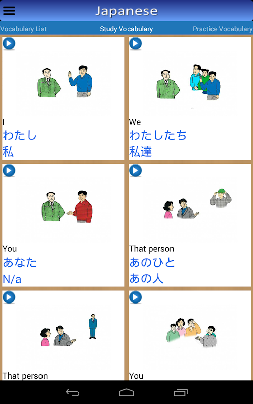 第一課から第五十課まで、「みんなの日本語」という日本語教科書にある語彙・言葉を提供しています。