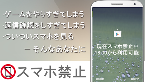 スマホ依存者専用のスマホ禁止タイマーです 設定した禁止時間中はブラウザを含むほぼすべてのアプリが使用できなくなります(※1)