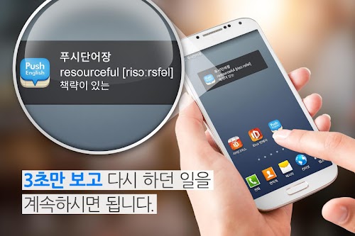 '푸시 단어장'은 단어, 뜻, 발음을 푸시로 보내주기 때문에 앱 실행 없이도 푸시창을 통해 틈틈이 단어를 암기할 수 있습니다.