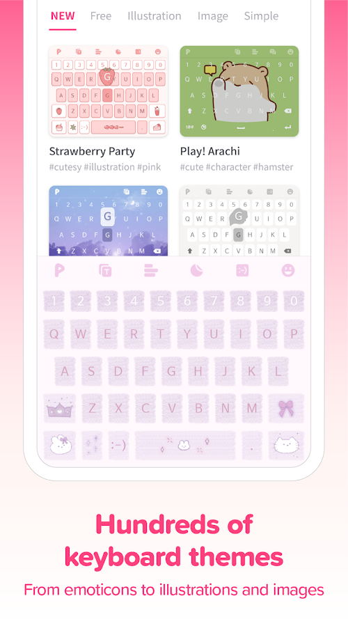 Add photos and GIF of your favorite cats & dogs, K-POP idols and characters to your keyboard background.