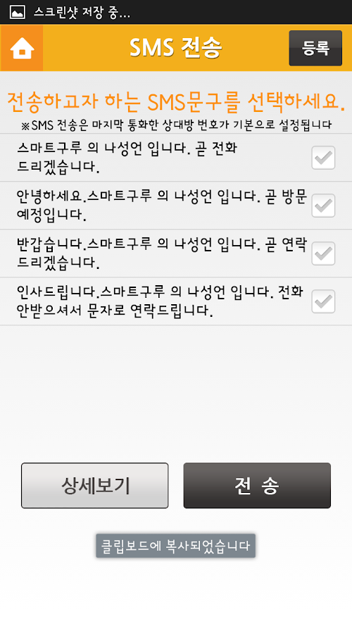고객에게 저장된 SMS 메시지를 간단하게 전송