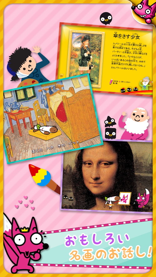 The paintings often faced by children is the ability to interpret the lines and warm colors, if such development increases the service life of aesthetics. - Pink Pong! Figure ah play: paintings Gallery has paintings tells a story to the children's eye level so that children can go a little bit more fun and easy approach to the paintings. A bit erratic and appeared in the video were supposedly watching Saguaro article released embellish fun to hear stories of actually 10003-5 on three kindergartners. One works one's short stories and commentary tangled also read with increasing understanding of the masterpiece!