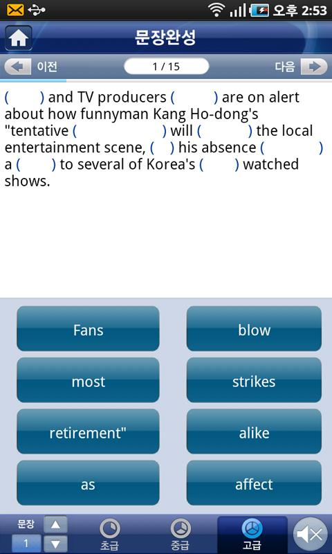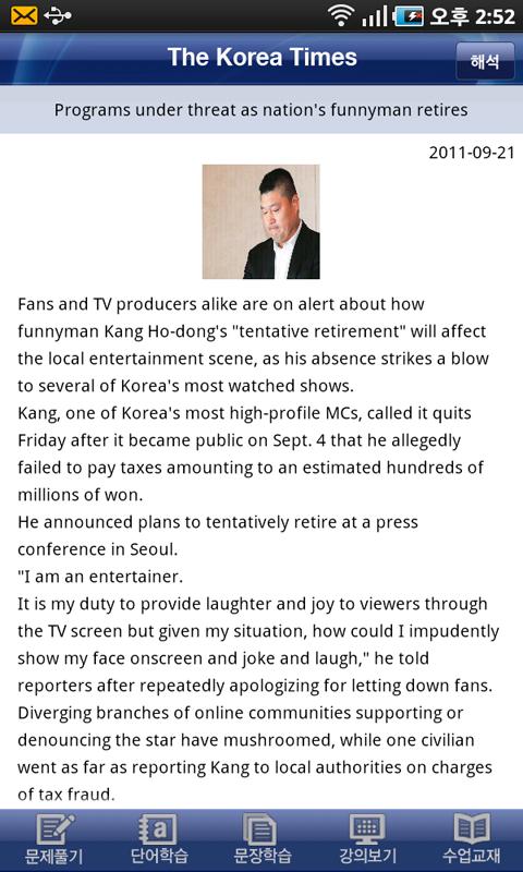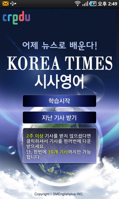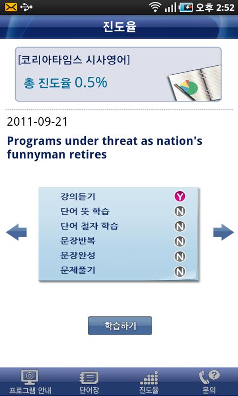 코리아타임스 시사영어는 영자신문, The Koreatimes의 오늘의 토픽을 토대로 구성한 시사영어 학습 프로그램입니다. 단어학습-문장학습-문제풀기-동영상강의로 구성된 학습방법과 학습관리프로그램을 통해 언제 어디서나 쉽게 접근할 수 있는 코리아타임스 시사영어는 영어학습을 하는데 가장 효과적인 툴이 될 것입니다.