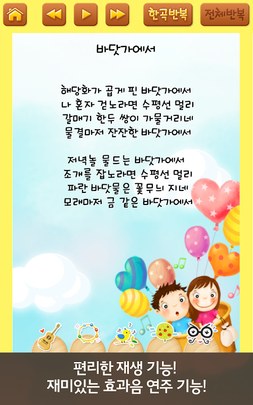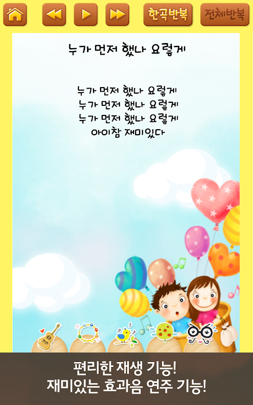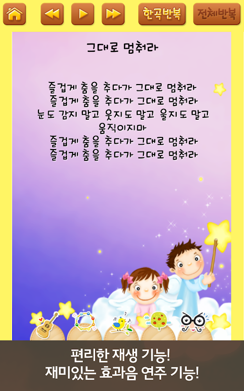 ☆ 학부모와 어린이가 함께 동요를 즐길 수 있도록 App이 구성되어 있습니다.