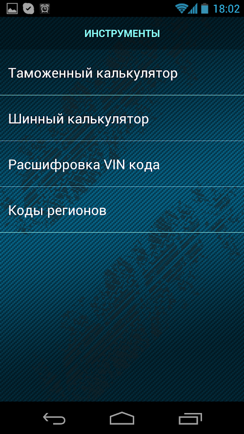 - Инструменты (таможенный калькулятор, шинный калькулятор, Расшифровка VIN кода, Коды регионов автомобильных номеров)