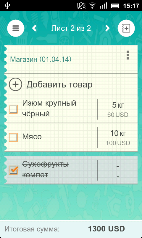 списки, вносите в них товары, которые нужно купить, указывайте их количество, цену.