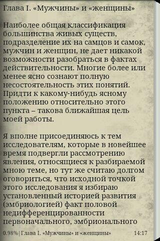 Книга понравилась. Все женщинам - читать. Удивительно, что в 23 года юноша обладал такой наблюдательностью за женском полом. 100% правда.The famous philosophical and psychological research for many years ahead of his time, in which, using excellent knowledge of psychology, history, philosophy, the author comes to a sudden, stunning conclusions.