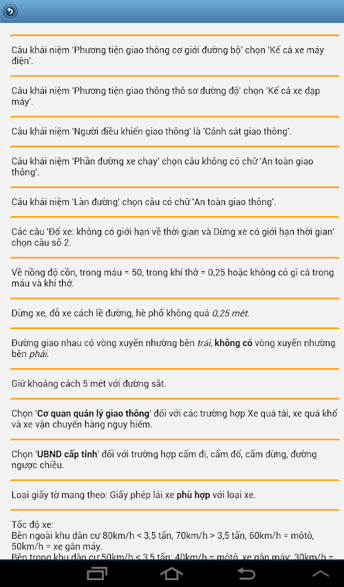 CHÚC CÁC BẠN LUYỆN & THI THÀNH CÔNG !Applications include the full 450 questions for tests, driving license road motor you are prepared to help the driver's license test machines and automobiles (especially Class B2) may be part of exam review presentations quickly and efficiently.