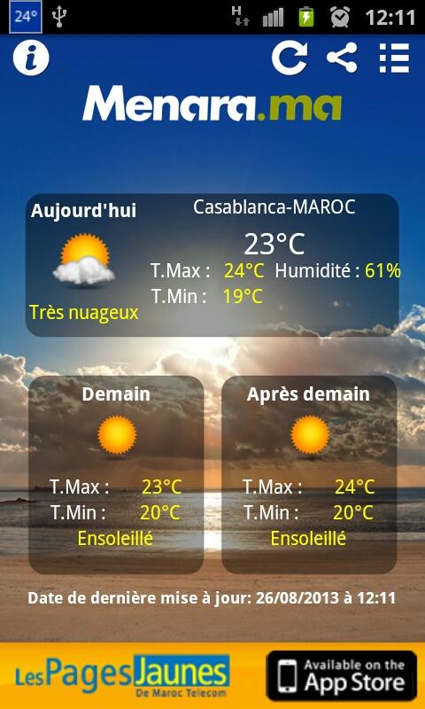 Menara Weather is an application CASANET Morocco Telecom SA subsidiary.