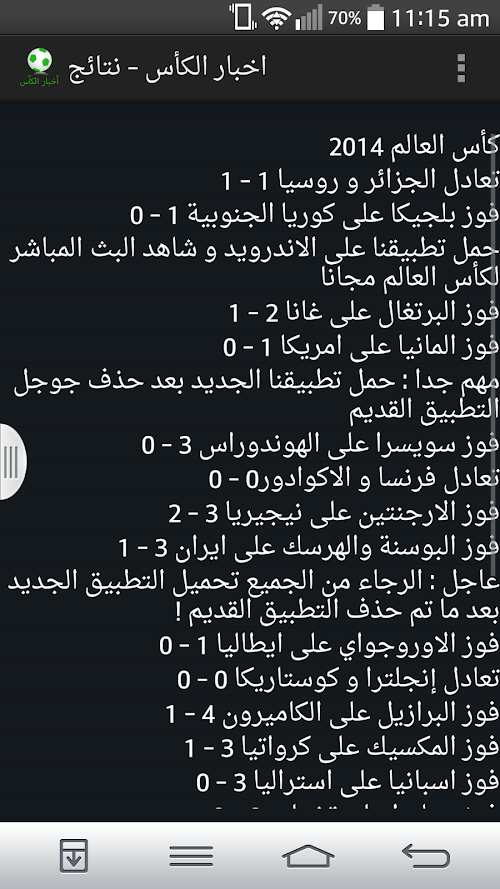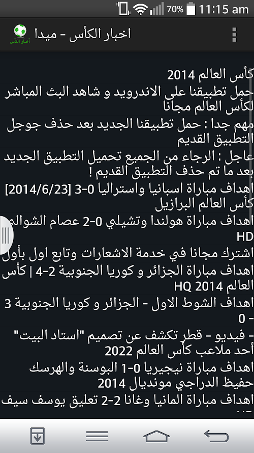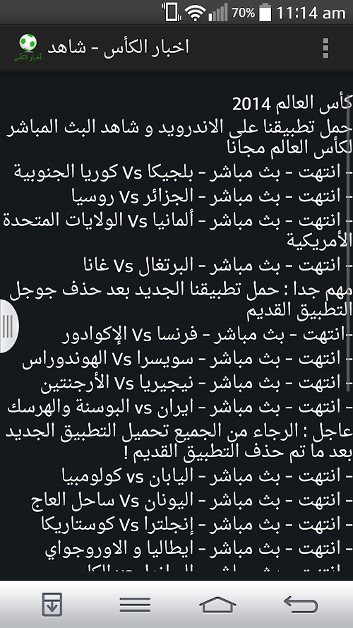 تطبيق لكل عشاق كأس العالم يحث يوفر لكم اخر الاخبار و النتائج اول بأول و كذلك الاهداف بالفيديو و المزيد ....