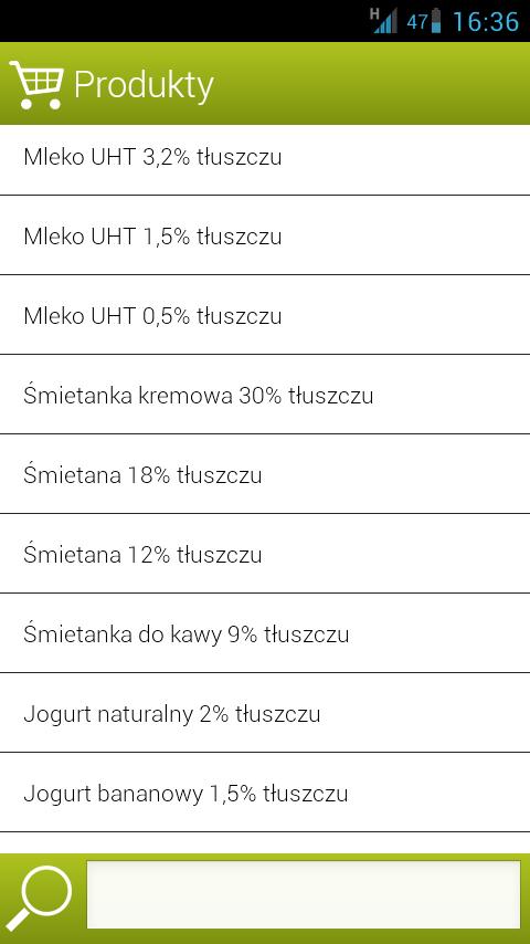 *podgląd zawartości makroskładników ( białka, tłuszcze, węglowodany ) i kaloryczność konkretnych produktów