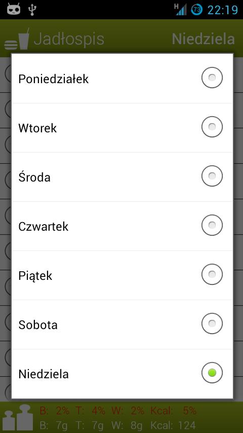 4. Zmiana dnia, z którego wyświetlany jest jadłospis