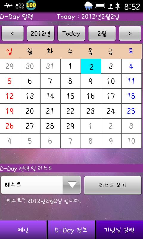 2. 입력한 D-Day에 따른 달력에서 검색가능