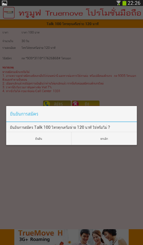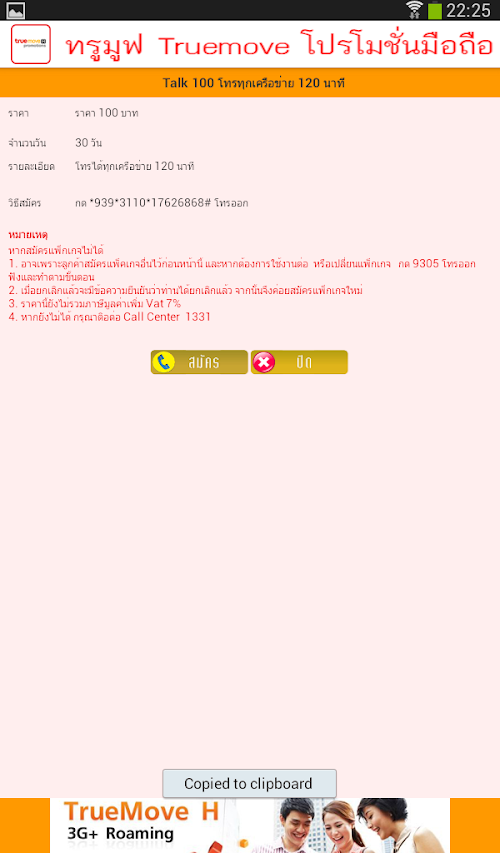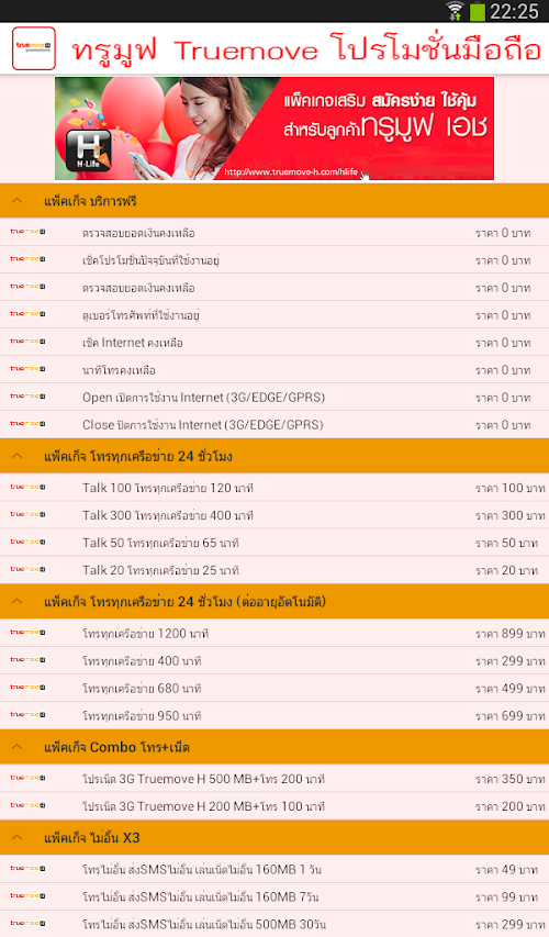 This app will include promotions for TrueMove Truemove divided into groups and packet sequence to give in easily. Choose promotion you want from the menu above. Press Apply now