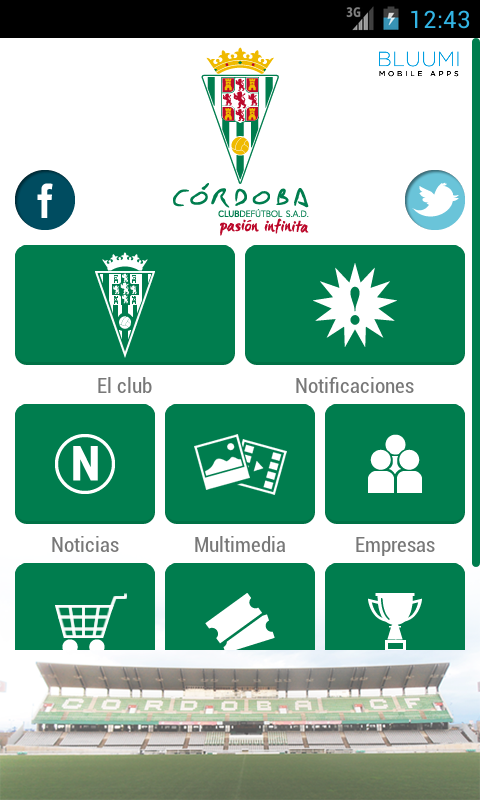 Descárgate la aplicación móvil oficial del Córdoba Club de Fútbol S.A.D. y tendrás acceso a todas las novedades y noticias del club.Get the official mobile application of Córdoba Club de Fútbol SAD and get access to all news and club news.