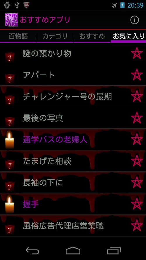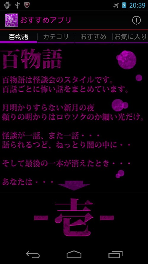 このアプリは世に流れる約15000の怖い話の中から、ガチで怖い話を中心に、人力で選りすぐった1288話の怖い話を収録!