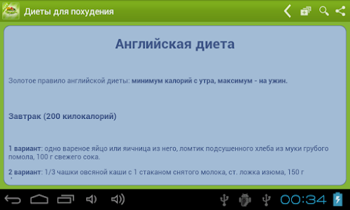Приложение содержит более 60 самых популярных и эффективных диет.Тут вы найдете самые разные диеты: быстрые и долговременные, жесткие диеты и диеты, выдержать которые не составит особого труда,