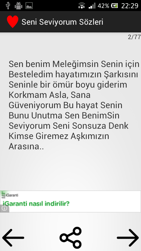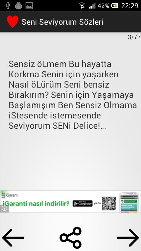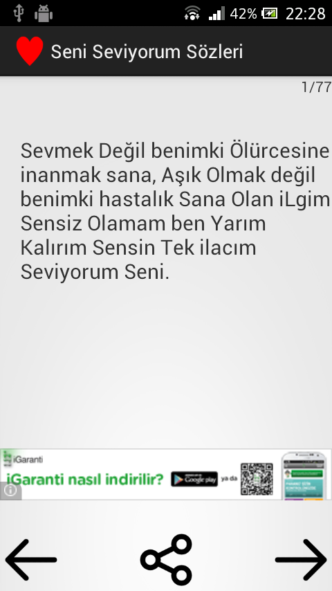 This version of Seni Seviyorum Mesajları Android App comes with one universal variant which will work on all the Android devices.
