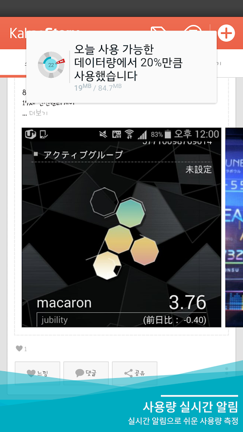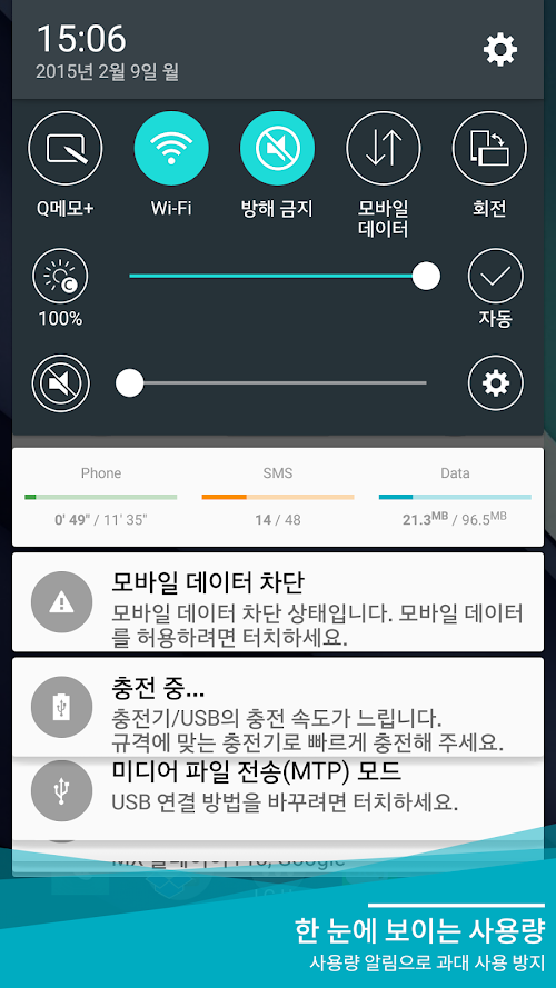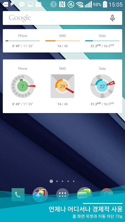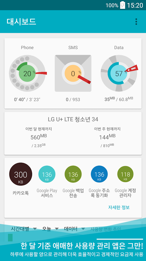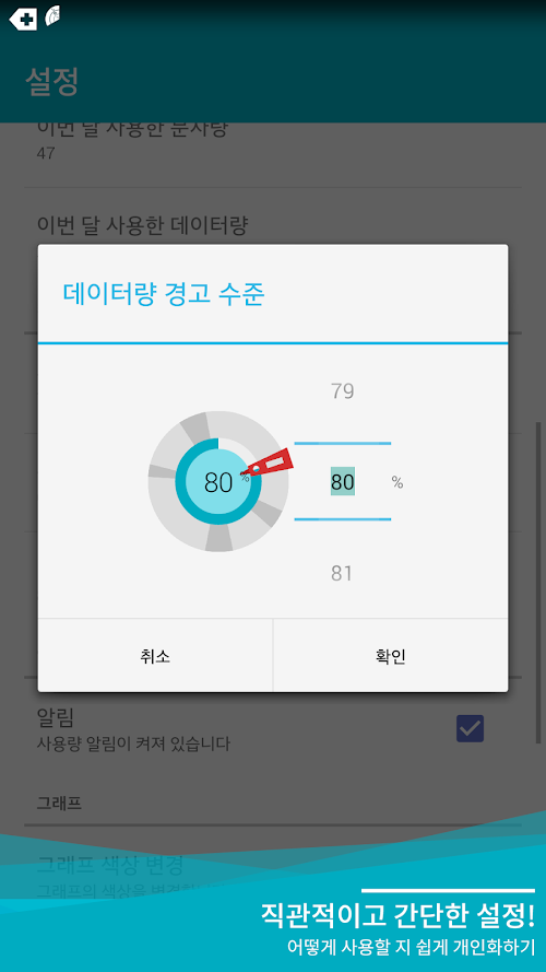 한 달 남은 데이터를 가장 경제적으로 사용할 수 있게 하루에 사용하면 가장 경제적인 데이터량을 계산해 주는 어플리케이션입니다. 쓴 데이터량만 보여주는 다른 앱들과는 달리, 오늘 얼마나 사용하면 월말까지 요금 걱정 안 하고 살 수 있을지 알림 및 위젯으로 표시해 주어 더 계획적이고 경제적인 데이터 사용이 가능합니다.