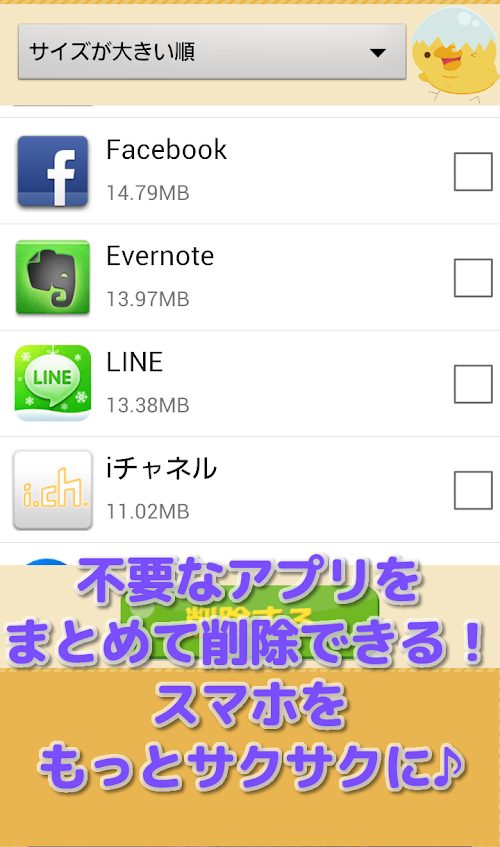 ・アプリ削除(要らないアプリをワンタッチで削除)