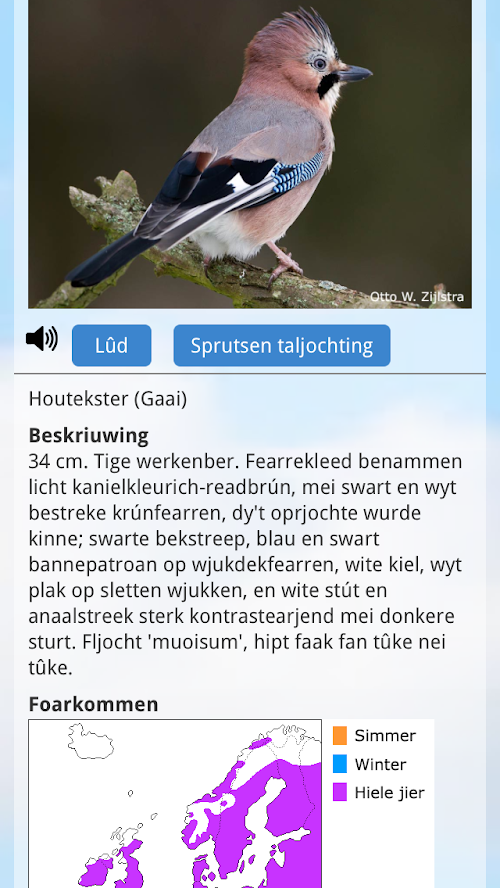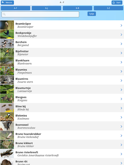 Dizze app is in e-gids, dy’t ynformaasje befettet oer 205 bistesoarten dy’t yn Fryslân foarkomme (fariearjend fan fûgels en sûchdieren oant ynsekten, reptilen, amfibyen en fisken).