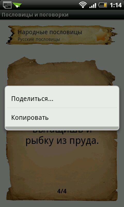 - Добавлена возможность поделиться пословицей (активируется через длительный клик на пословице)