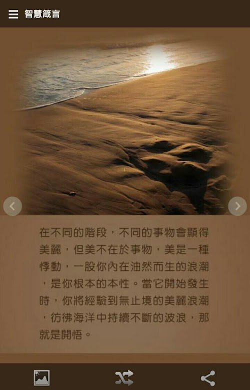 - 透過社群應用程式whatsapp, 臉書(facebook), 推特(twitter) 分享箴言圖片
