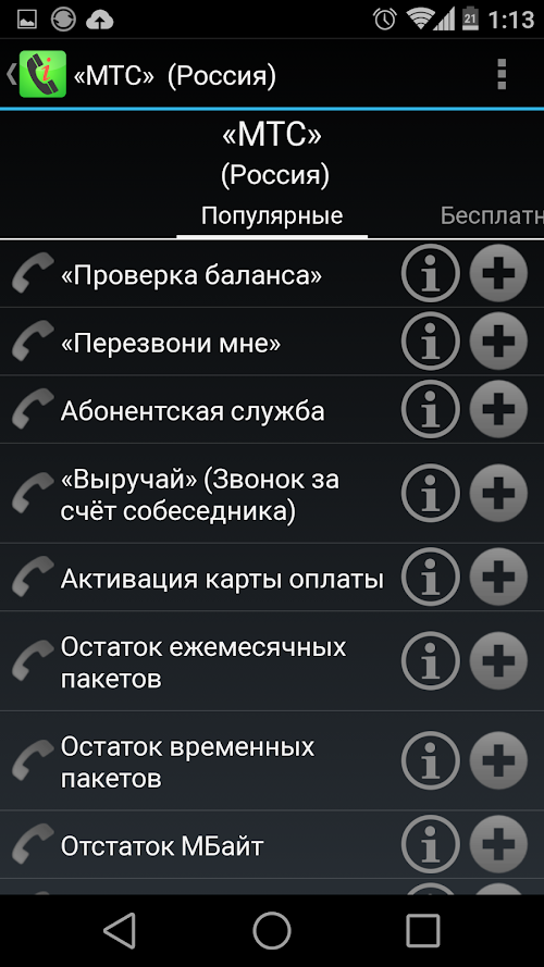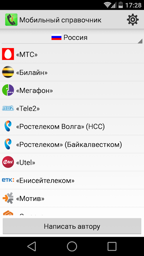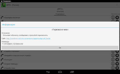 "Mobile Directory" codebook mobile operators! The program allows you to view and use the more convenient service codes (USSD) mobile operators. With the help of the program - you can send a message with a request to call you back - just by selecting the appropriate item on the program and the number from the address book. Also, you can add the necessary commands to the list of contacts for further, more convenient to call them.
