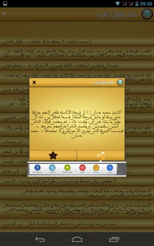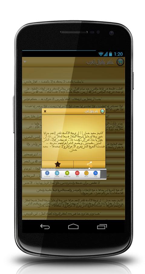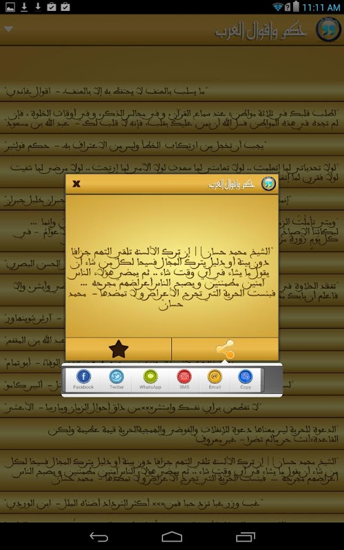 إدا كنت تبحت عن حكم و اقوال بلغة الظاظ فلا تتردد في تتبيت هدا التطبيق فهو يخول لكم إمكانية مشاركتها مع اقاربكم واصحابكم عبر مجموعة من الوسائل كالرسائل القصيرة، واتساب، الفيسبوك، تويتر وحتي البريد الالكتروني.
