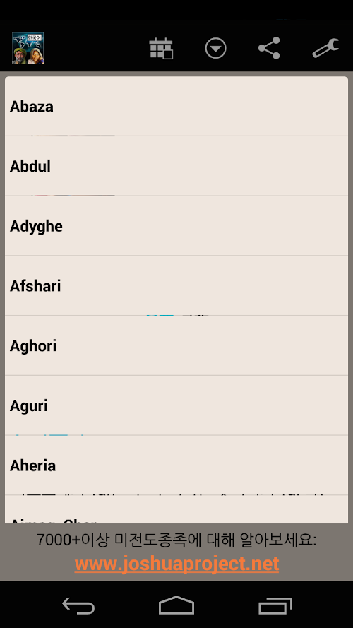 This application is an application made for students LightSys Spring Break Code-a-Thon 2012 period at the request of the Joshua Project. And pray for the day-to-day other unreached, has also been created can be used to browse the many other unreached. Developed by Terry & # 8220; Bacon & # 8221; Penner and Tumbler Terrall. Korean version of the brothers with the help of the United States Kang Hee-seon (Hison Kahng) Brother has created. Second version of the Korean translation has had you had trouble with Kim A-rim songeunmi Sister, Sister!