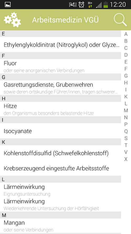 Es sind von A wie Arsen über L wie Lärm und N wie Nachtarbeit bis X wie Xylole sämtliche Einwirkungen rasch abfragbar.Health VGÜ are both occupational physicians and lawyers and workers a complete, detailed, quickly navigable overview of the VGÜ -. Regulation on health surveillance in the workplace and the associated selection and follow-up examinations in accordance with § 49 Section 1 of the WEA. Incl. UPDATE 2014