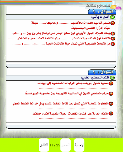يحتوي التطبيق على نماذج واختبارات على المنهج شامل جميع الوحدات