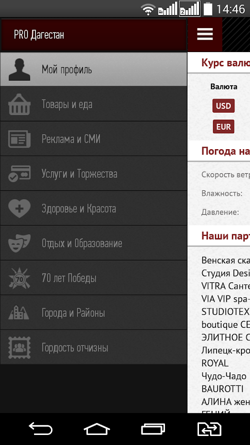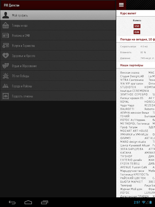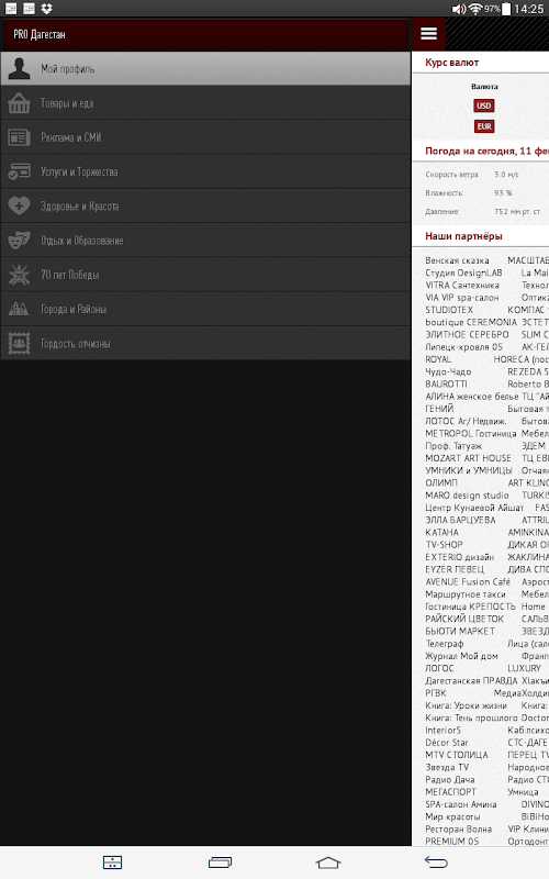 10. Функция геолокации – отображает объект поиска на карте и дает возможность не только выбирать ближайшее заведение, но и рассчитать примерный маршрут или время доставки.PRO Dagestan - it is a social platform of a new type, which is free for citizens of the republic opens new opportunities such as: