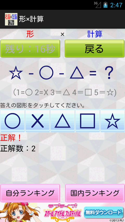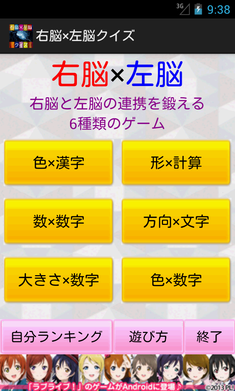 "Right brain left brain ×" is a game that can train the cooperation of left brain and right brain. Please try to challenge the quiz of six to make it work the full two sides of the brain.