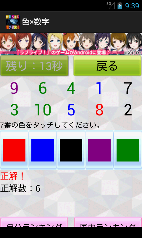 右脳の領域である「色認識力」と左脳の領域である「数字認識力」を連携させて遊ぶゲームです。色と数字を瞬時に認識してタッチすることができるでしょうか。