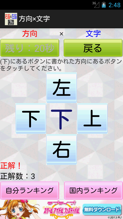 It is a game to play to make it work is the area of the right brain "direction cognition" is a region on the left side of the brain "Character cognition". Will it be able to touch by recognizing instantly the character that represents the direction and direction.