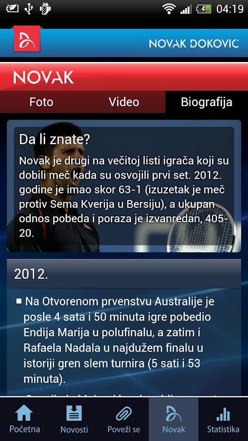 4. Novak - biografija, foto i video sadržaji. From Wednesday, August 23, is active in new, multilingual version of the official mobile application, which is why the old will no longer be updated. Download the new version and enjoy all the amenities that we have prepared. Thank you for your understanding.