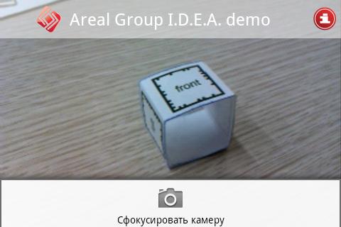 Для фокусировки камеры нажмите на кнопку "меню" и выберите пункт "Сфокусировать камеру". The application demonstrates the possibility of using augmented reality for the fitting of 3D objects by yourself with the use of markers.