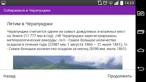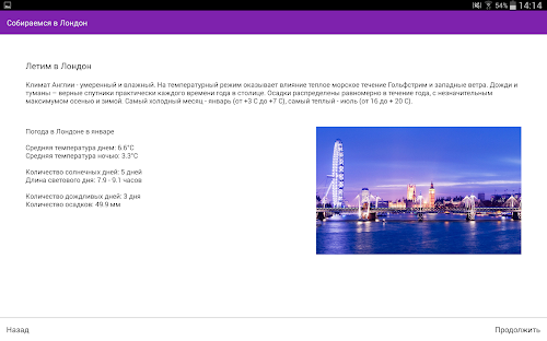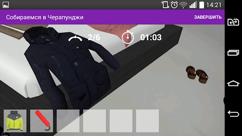 The application determines the child's level of knowledge on the topic "Climatic zones" in the format of the game. The player's task - to choose travel city (Singapore, Alice Springs, Oymyakon, Tunisia, Cherrapunji), after that collect in the room, only those things that will be useful on the trip. Initial data: Yaroslavl, January. All the things you need to collect as soon as possible, having made the minimum number of errors. In the course of the game participant receives points. It is recommended to arrange the ratings / competitions in the company of friends, class or school.