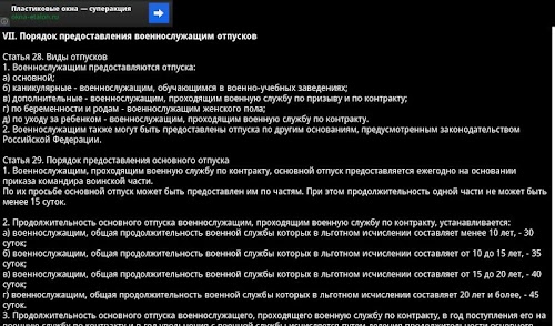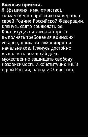 Нормативно-правовые документы, общевоинские уставы, необходимые каждому военнослужащему.Legal documents, military regulations necessary for the individual service.