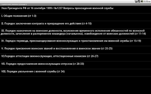 Версия 1.7. Включает в себя Общевоинские Уставы ВС РФ, Положение о порядке прохождения военной службы (Указ Президента РФ №1237).