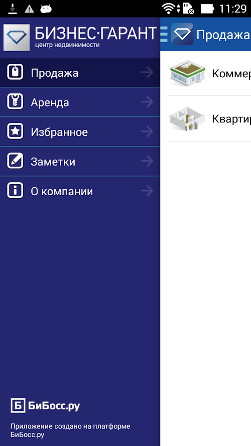 Вы можете воспользоваться мобильным приложением бизнес-гарант, чтобы найти необходимый Вам объект недвижимости в СамареGroup of companies "Business Garant" offers its services in the market of buying and selling real estate in Samara. Our database objects are various facilities, including office, industrial, warehouses, shopping areas, as well as a large selection of universal space.