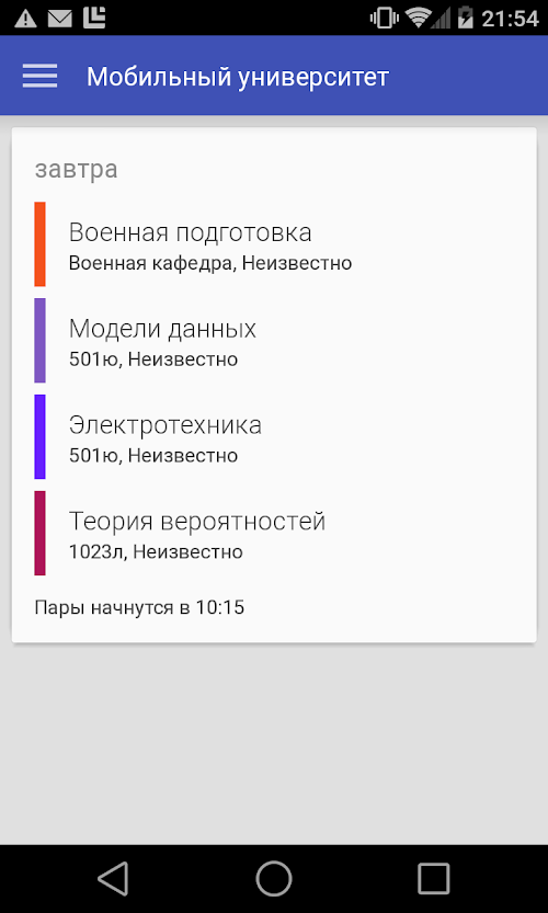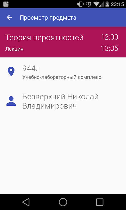 Просмотр своего расписание занятий и получение уведомления о начале пар.