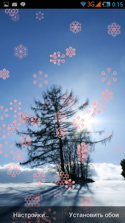 This is a very special live wallpaper with snowflakes that are absolutely different in shape as each one of them is formed using its unique algorithm - no two are alike. Depending on your likes and your moods, you can form your own Winter weather and your own snow fall - it can be a light snowfall or a February night's blizzard.