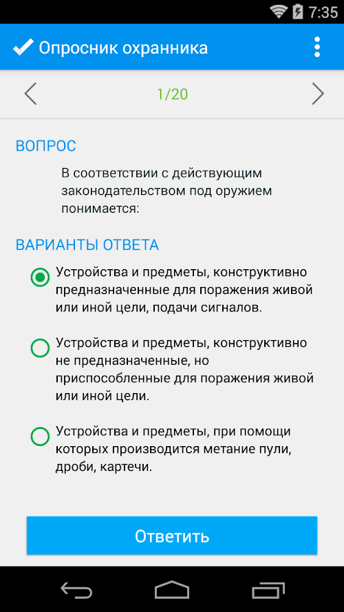 If you are looking to download other versions of Опросник охранника Android App, We have 1 version in our database. Please select one of them below to download.