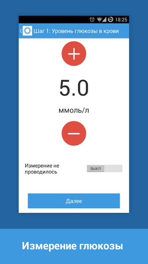 1 шаг: введение уровня глюкозы в крови. В случае если нет возможности его измерить, необходимо отметить, что измерение не проводилась. Это нужно для дневника контроля, а также для расчета дозы инсулина в случае гипер- или гипоглейкемии;